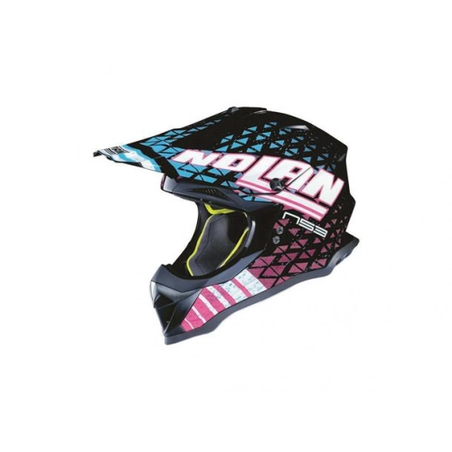 N53 er en crosshjelm fra Nolan. Kult design og utpreget personlighet, i tråd med de nyeste trendene i sin klasse. Hjelmen er laget av polykarbonat og har en pustende liner og indre padding som enkelt kan fjernes før vask. Med det effektive ventilasjonssystemet gir det et helt supert klima i hjelmen